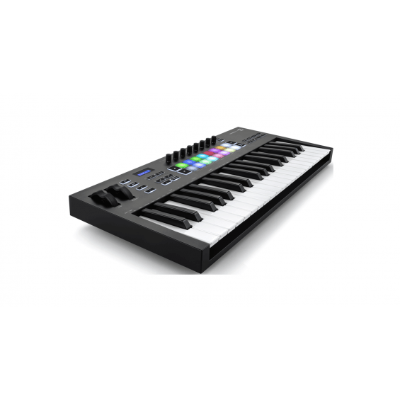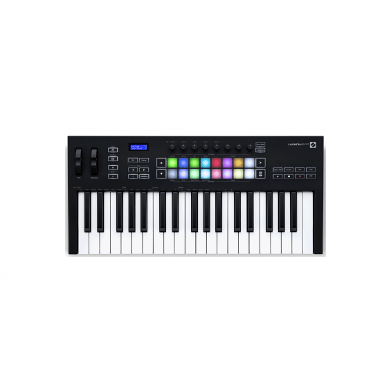 Novation Launchkey 37 MK3 Controlador de teclado MIDI de 37 teclas diseñado para Ableton Live con acceso inmediato a todos los controles necesarios. Teclado sensible a la velocidad y los 16 pads permiten un rendimiento expresivo y dinámico. Tres modos de acordes (fijo, escala y usuario) permiten disparar acordes con un dedo. Modos de escala que transponen las teclas y pads a las notas de la escala seleccionada. Acceso con un solo toque a la función de captura MIDI de Ableton Live significa que nunca se pierde una idea. Potente arpegiador que lleva a nuevos lugares melódicos, armónicos y rítmicos. Salida MIDI de cinco pines funciona con cualquier dispositivo compatible con MIDI. Pantalla de 16x2 caracteres te permite ver fácilmente el estado de lo que estás controlando o seleccionando. Software gratuito, incluyendo Ableton Live 10 Lite, instrumentos virtuales, plugins y paquetes de muestras te permiten empezar a crear inmediatamente. Ajuste de instrumentos y efectos a la perfección utilizando 8 codificadores rotativos. Cuatro modos personalizados te permiten crear configuraciones de control únicas para cualquier actuación o equipo de estudio, utilizando Novation Components.