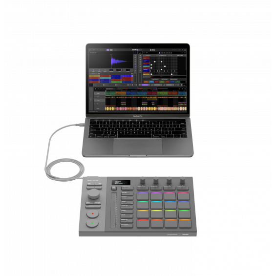 - Dial giratorio y botones dedicados: controla navegación, transporte, efectos, EQ, parámetros de plugins o stems, con acceso rápido desde el propio hardware.